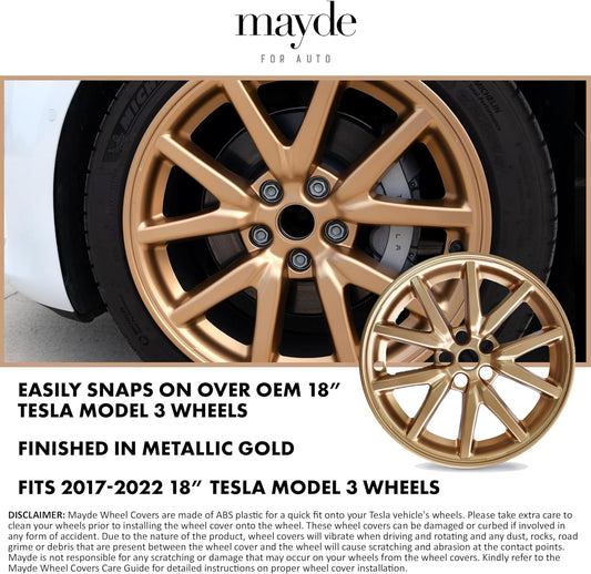 Mayde 18-Inch Wheel Covers fits 2020-2023 Tesla Model 3 Rims, Replacement Hub Caps (1 Piece, Gold)