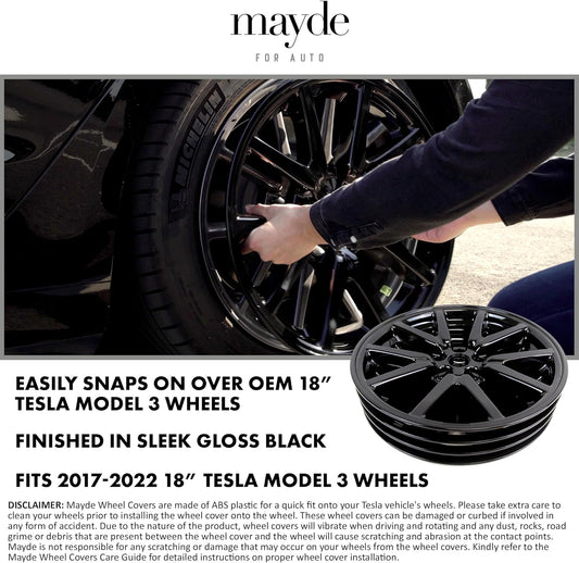 Mayde 18-Inch Wheel Covers fits 2017-2023 Tesla Model 3 Rims, Replacement Hub Caps (1 Piece, Gloss Black)