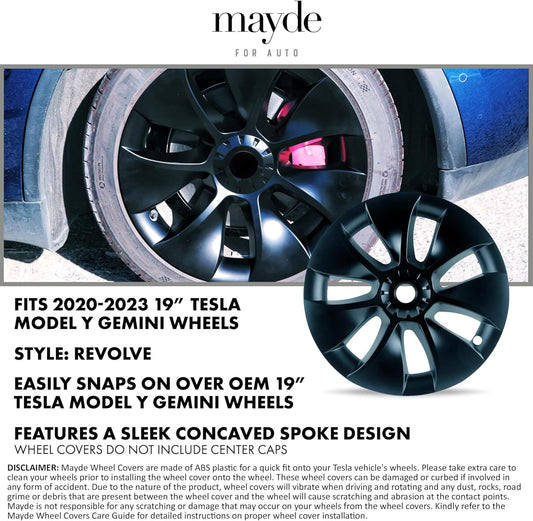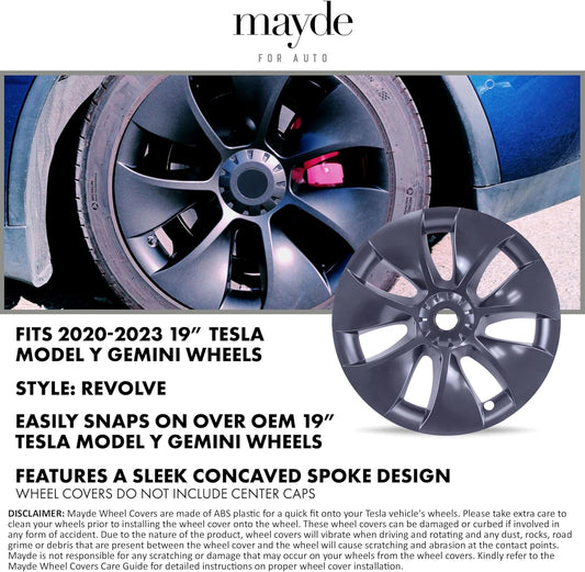Mayde 19-Inch Hub Caps fits 2020-2023 Tesla Model Y, Replacement Wheel Covers (Set of 4) - Revolve, Matte Black