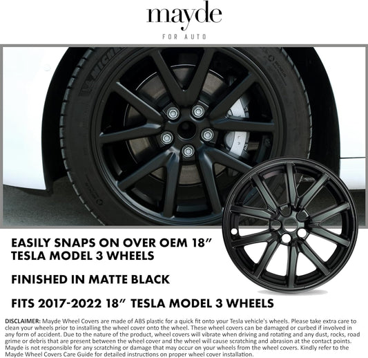 Mayde 18-Inch Wheel Covers fits 2017-2023 Tesla Model 3 Rims, Replacement Hub Caps (1 Piece, Matte Black)