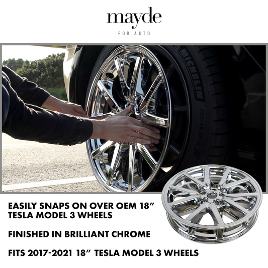 Mayde 18-Inch Hub Caps for 2017-2020 Tesla Model 3, Replacement Wheel Covers (Set of 4, Chrome)