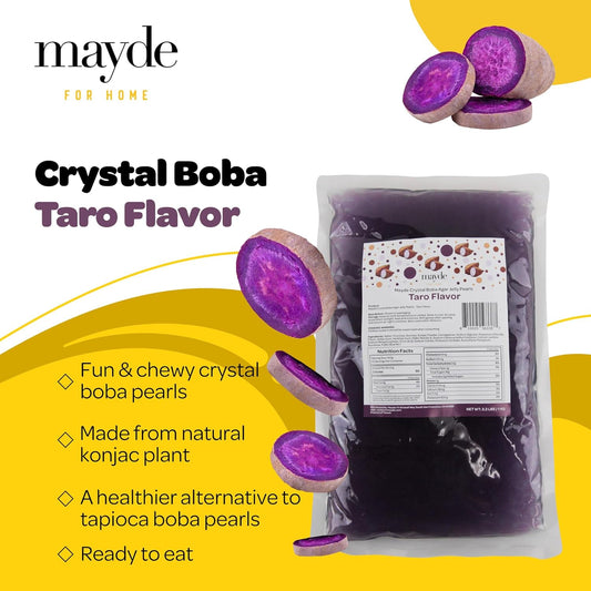 Mayde Crystal Boba for Bubble Tea Drinks Milk Tea Shaved Ice Topping, Agar Boba, Taro Flavor - 2.2 lbs