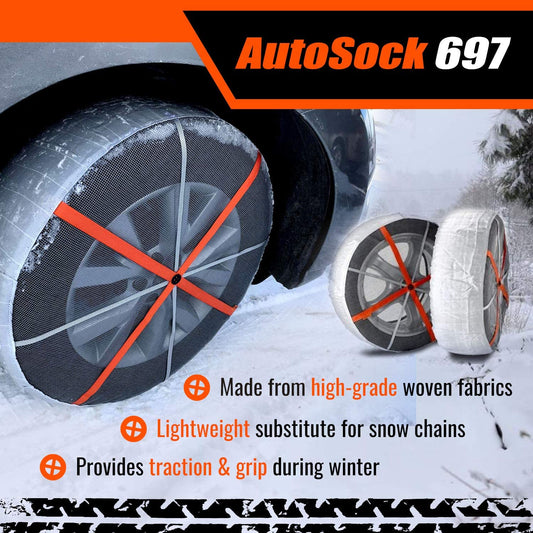 AutoSock 697 Snow Socks for Car, SUV, & Pickup - Better Alternative to Tire Chains (Pack of 2)