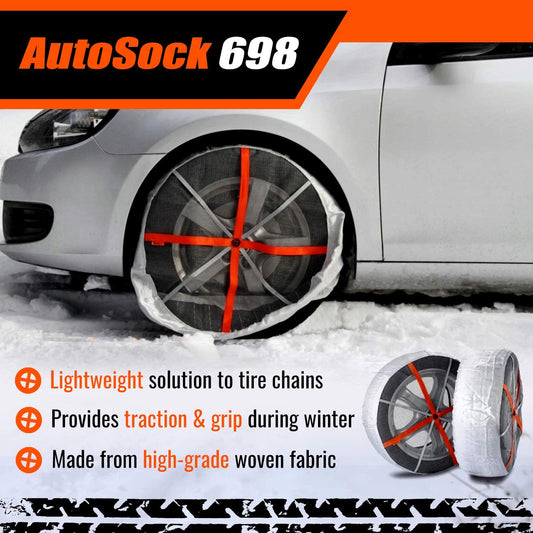 AutoSock 698 - Snow Socks for Car, SUV, & Pickup - Easy to Use Tire Chains Alternative (Pack of 2)