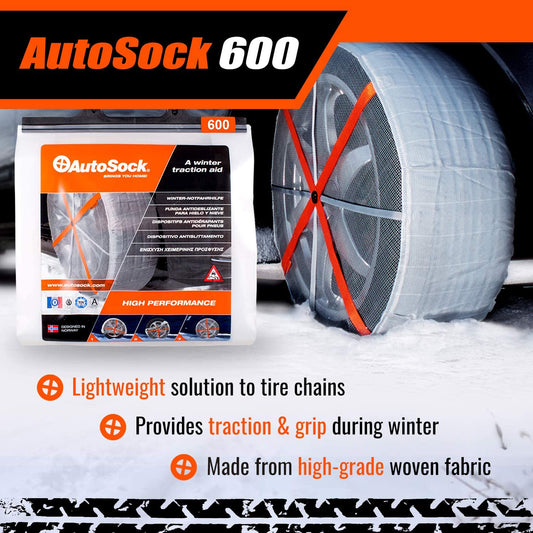 AutoSock 600 - Snow Socks for Compact & MicroCars - Easy to Use Tire Chains Alternative (Pack of 2)