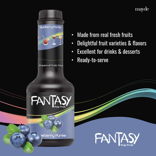 Mayde Fantasy Fruit Purée, Natural Smoothie Fruit Puree & Milk Tea Syrup - Blueberry 600 Grams