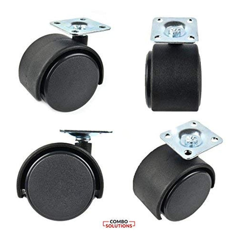 1-12inch Black Nylon Twin Wheel Swivel Plate Caster Top Plate Overall 1-12inchx1-12inch Overall Ht 1-34inch 70 Load- 4pack with 20 screws