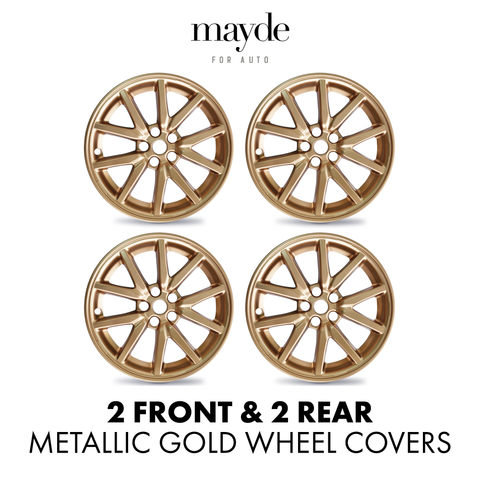- Metallic gold Finish - Change the color of your wheels with Mayde Metallic gold hubcaps