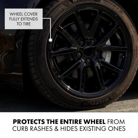 - Hides Curb Rashes - These wheel caps extend to the tire and hide past curb rashes!