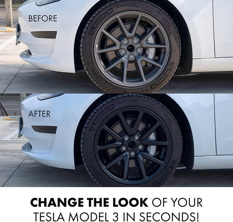 - Easy to Install - Snaps into place ーeach kit includes 4 18-inch hub caps fits your Tesla Model 3.