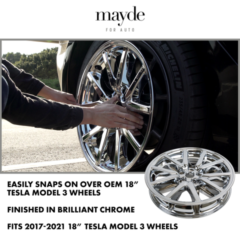 Mayde 18-Inch Hub Caps for 2017-2020 Tesla Model 3, Replacement Wheel Covers (Set of 4, Chrome)
