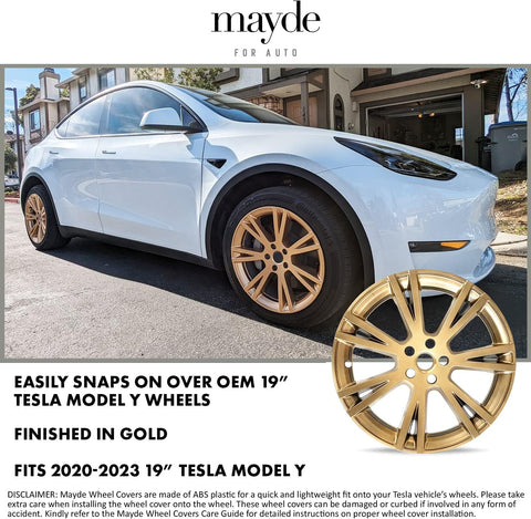 Mayde 19-Inch Hub Caps fits 2020-2022 Tesla Model Y, Replacement Wheel Covers (Gold)