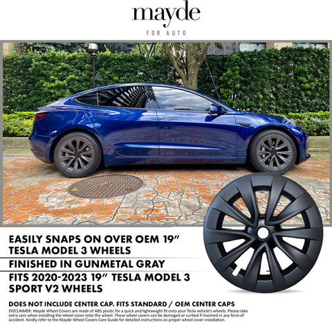Mayde 19-Inch Hub Caps fits 2020-2023 Tesla Model 3, Replacement Wheel Covers (Set of 4) (19" Gunmetal Gray)