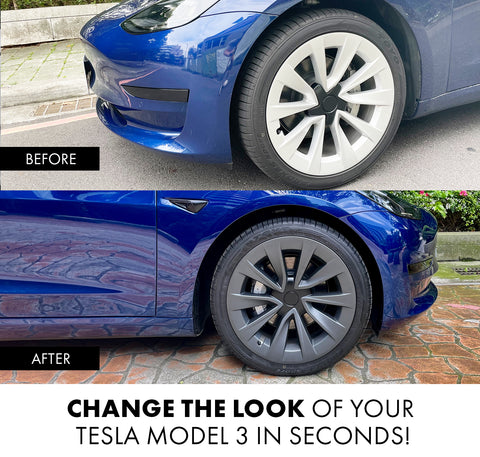 - Easy to Install - Snaps into place ーeach kit includes 4x 19-inch hub caps fits your Tesla Model 3.