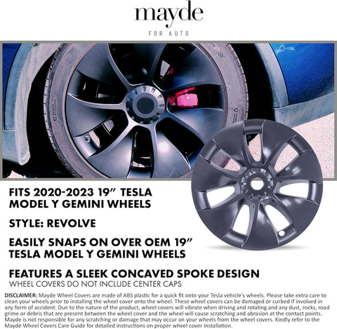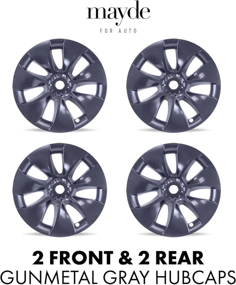 Mayde 19-Inch Hub Caps fits 2020-2023 Tesla Model Y, Replacement Wheel Covers (Set of 4) - Revolve, Gunmetal Gray