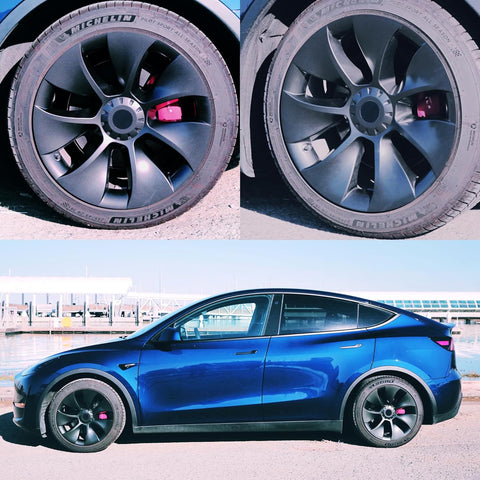 - Snaps Into Place ー Each kit includes four 19-inch wheel covers for your Tesla Model Y.