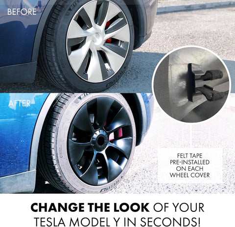 - Snaps Into Place ー Each kit includes four 19-inch wheel covers for your Tesla Model Y.