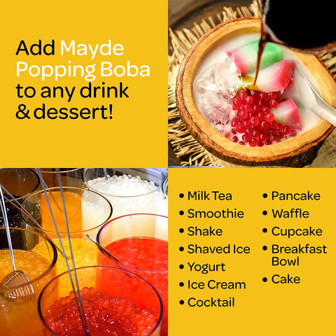 Mayde Bursting Popping Boba Pearls, Kiwi, Mango, Passion Fruit - 3 Flavor Tropical Fruits Party Kit (490 gms, 3-pack)