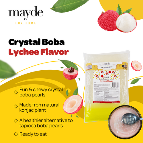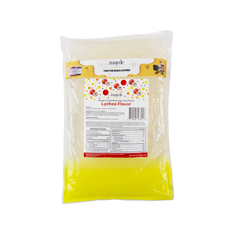 Mayde Crystal Boba for Bubble Tea Drinks Milk Tea Shaved Ice Topping, Agar Boba, Lychee Flavor - 2.2lbs