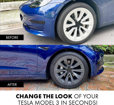 - Snaps Into Place ー Each Tesla wheel cap kit includes 4 18-inch wheel caps for your Tesla Model 3.