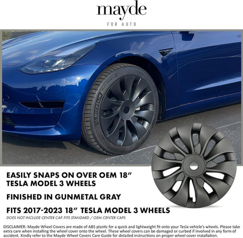 Single Replacement for Mayde 18-Inch 2017-2022 Tesla Model 3 Hub Cap, Replacement Wheel Cover (Set of 1) (Gun Metal)